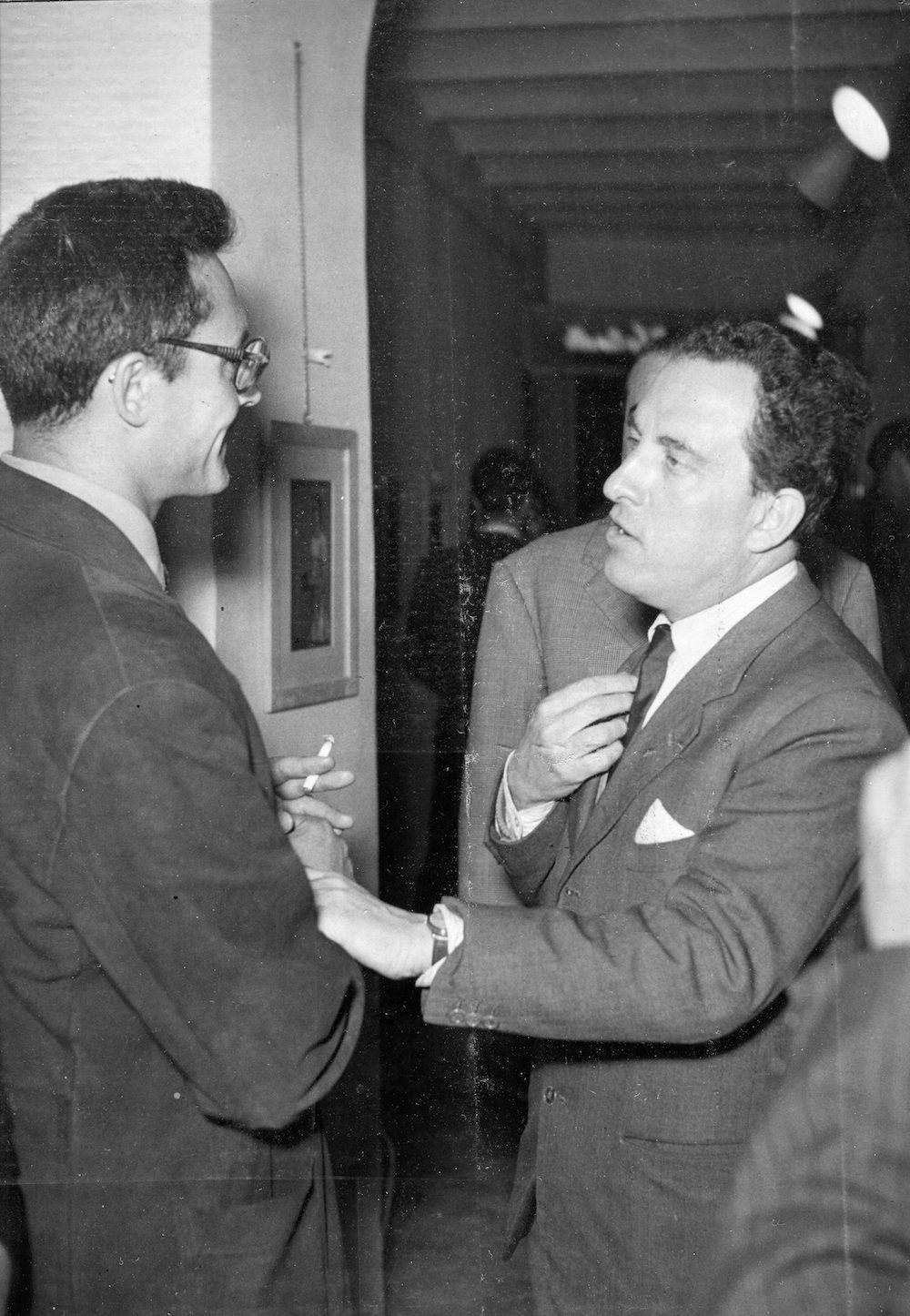 Anni ’50. Alberto Tavazzi con il pittore Luigi Montanarini ad una mostra