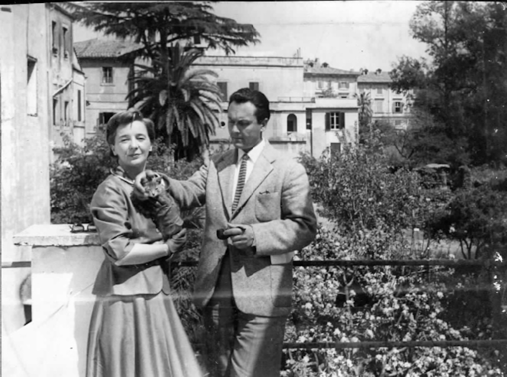 Anni ’50. Alberto Tavazzi con la moglie Bianca sul terrazzo della loro casa a Via dei Riari