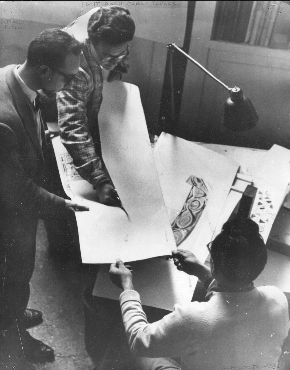 Anni ’50. Alberto Tavazzi nel suo studio con il fratello architetto Carlo