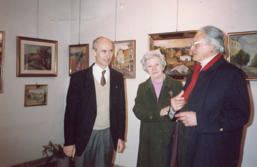 1990. Alberto Tavazzi alla galleria La Pigna con l’architetto Javier Cotelo e la moglie Bianca